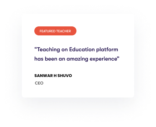 আমাদের প্ল্যাটফর্ম আপনার দক্ষতা যাচাই করার এক চমৎকার সুযোগ করে দিচ্ছে। এখানে আপনি নিজের পছন্দমতো বিষয় নিয়ে কোর্স তৈরি করতে পারবেন এবং সারা বিশ্বের শিক্ষার্থীদের কাছে তা পৌঁছে দিতে পারবেন।